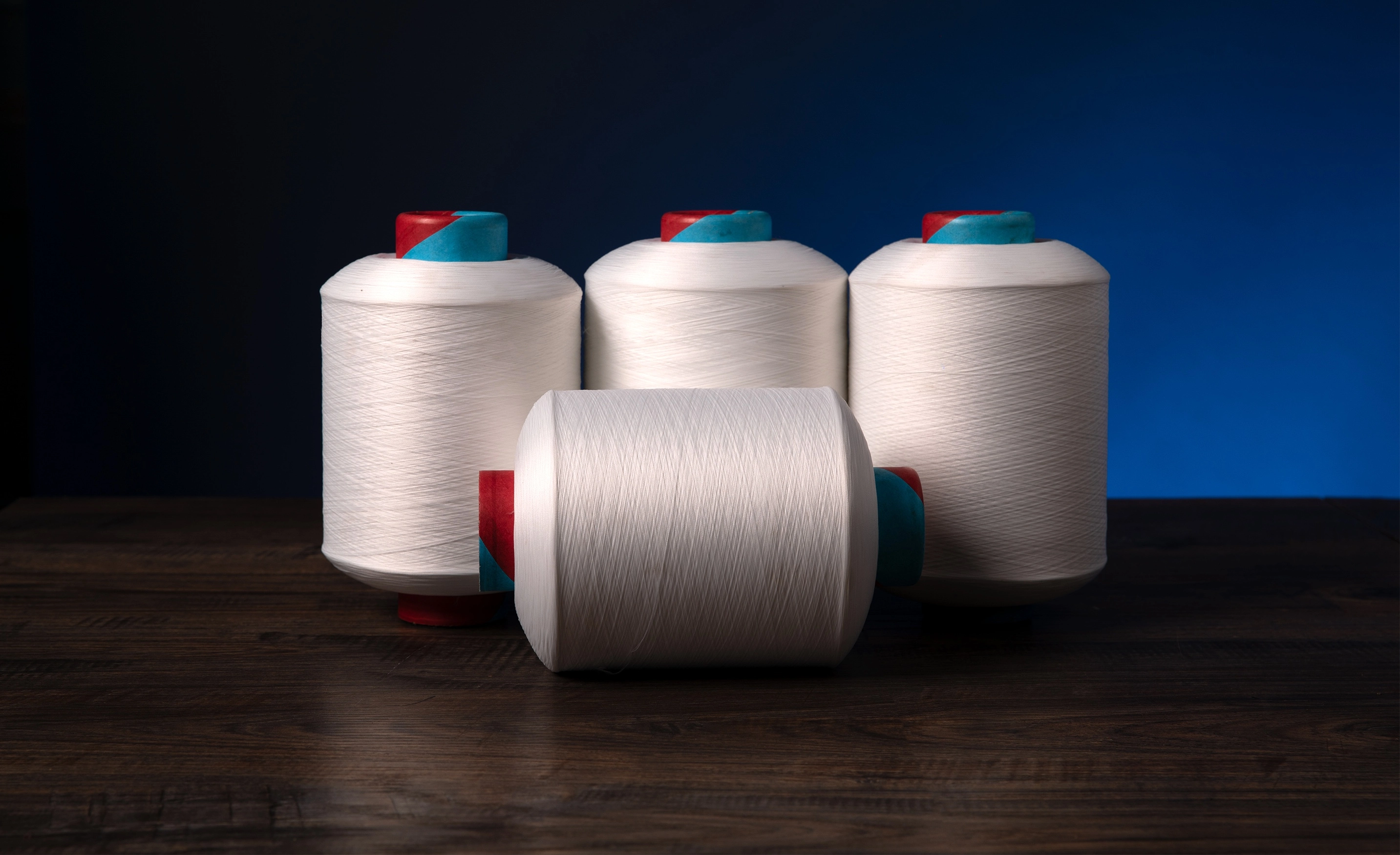 In textured greige yarns, we primarily supply full dull yarns, and a selection of semi-dull yarns. Full dull yarns are polyester yarns modified chemically or physically to reduce their luster. Typically this is through doping them with a delusterant like titanium dixode. This is done in semi-dull yarns as well, and in small quantities in bright yarns, the amount being greater in full-dull yarns